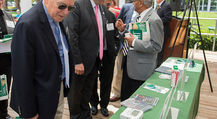 At the dedication, summit participants browsed some research artifacts and inventions that will be included in the time capsule.