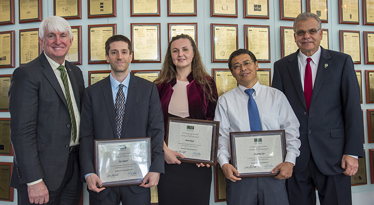 This year's Excellence in Innovation Award winners are, from left, Chuanhai Cao, PhD; Anna Pyayt, PhD; and Jay Ligatti, PhD.